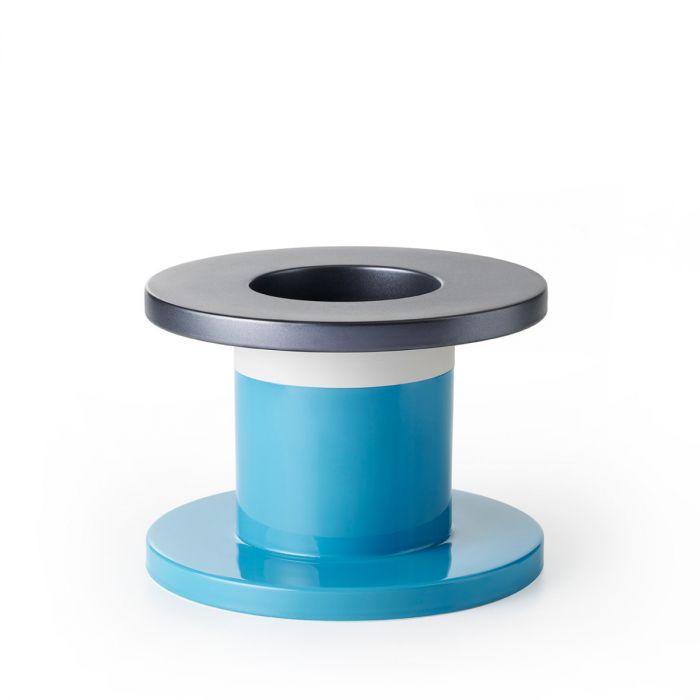 Από λευκό πηλό,βερνικωμένο σε γυαλιστερό τιρκουάζ και η βάση σε οξειδωμένο χαλκό