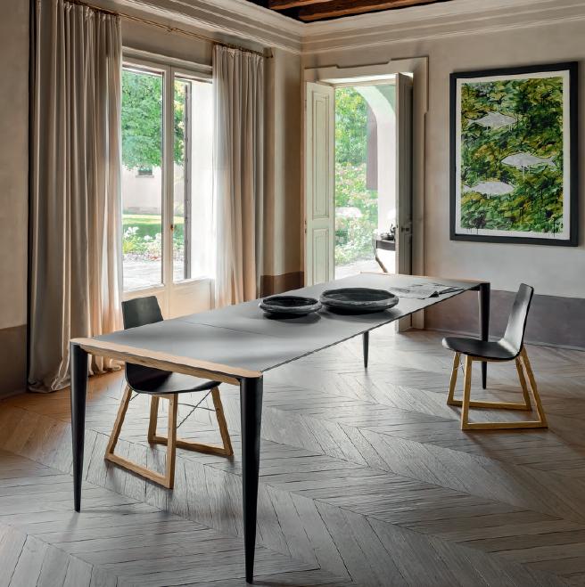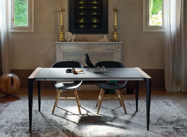 Τραπέζι με επέκταση ,σχεδιασμένο από τον Renato Zamberlan ,από τη συλλογή της εταιρίας Casamania-Horm.Με μεταλλικά πόδια σε λευκό ή μαύρο και καπάκι από Fenix-NTA και λεπτομέρειες από ξύλο δρυς ή καρυδιάς