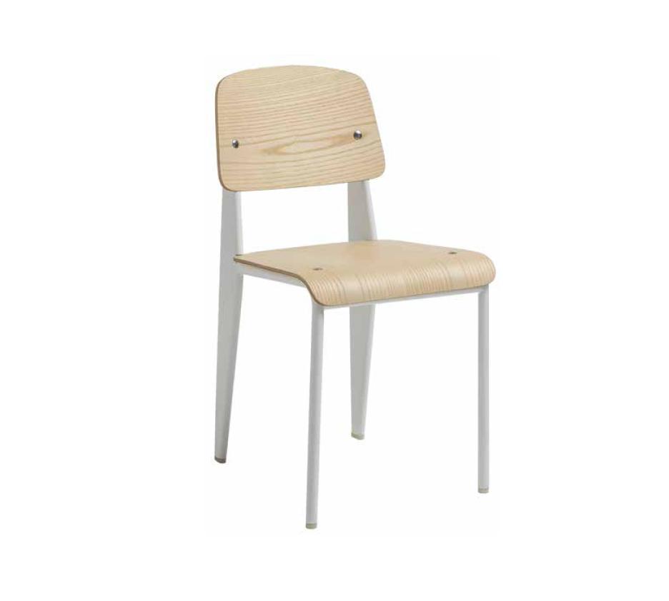 Καρέκλα με σκελετό από λακαριστό μέταλλο και κάθισμα και πλάτη από ξύλο.