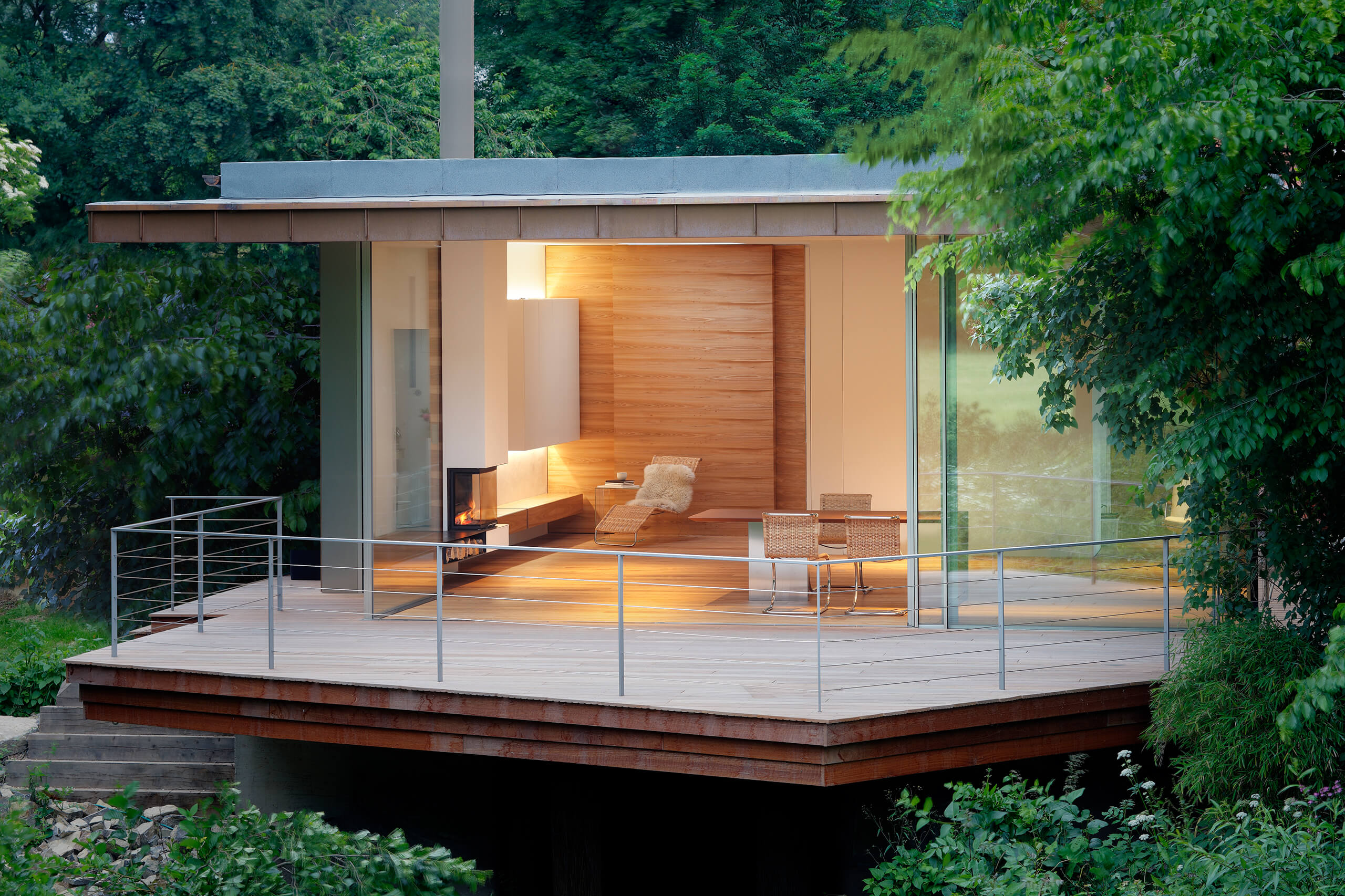 Ανάκλινδρο σε σχεδιασμό Mies van Der Rohe με σκελετό από ανοξείδωτο ατσάλι ματ και ρυθμιζόμενο κάθισμα και πλάτη από ψάθα. Διατίθεται προαιρετικά μαξιλάρι από δέρμα ή ύφασμα.