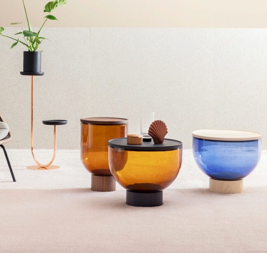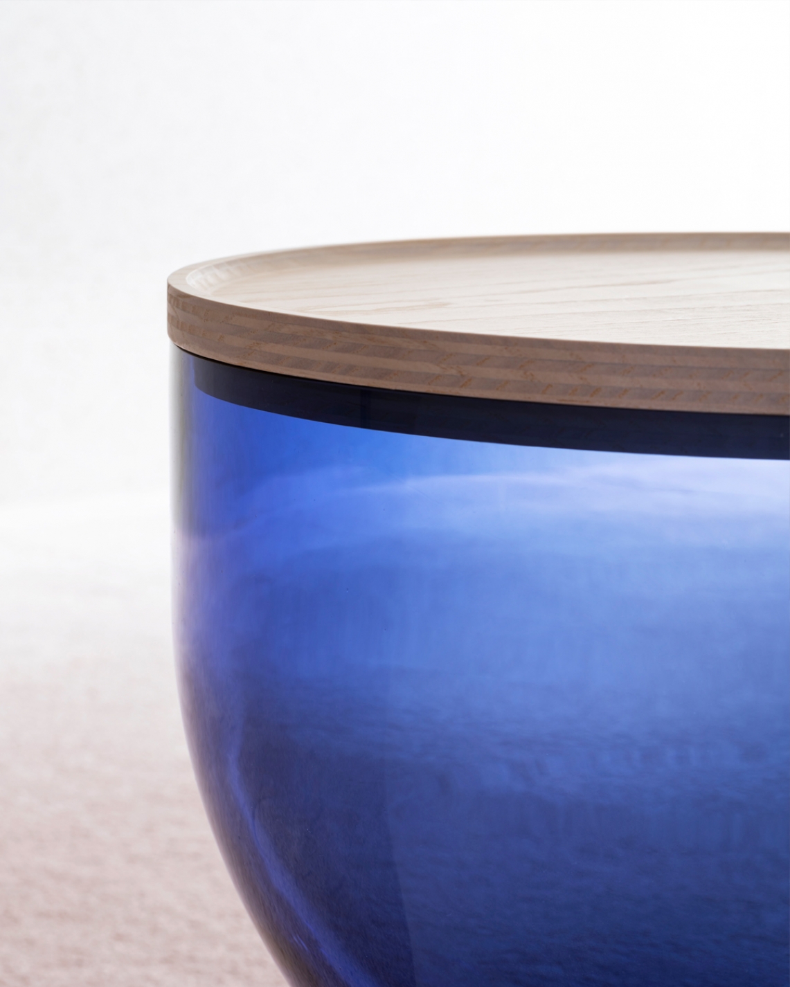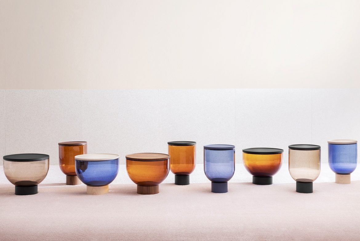 Τραπεζάκι από την συλλογή της εταιρίας Miniforms, με δομή από φυσητό γυαλί Murano και βάση και επιφάνεια από ξύλο.Είναι διαθέσιμο σε 2 μεγέθη.