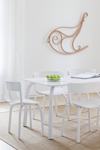 Καθίσματα και πλάτη κατασκευασμένα από κόντρα πλακέ, ποδιές και πλάτη από πολυεστέρα ξύλου σε φυσική ή χρωματισμένη οξιά ή λευκή χρωστική λάκα. Τα καλύμματα ταπετσαριών σε δέρμα ή ύφασμα.